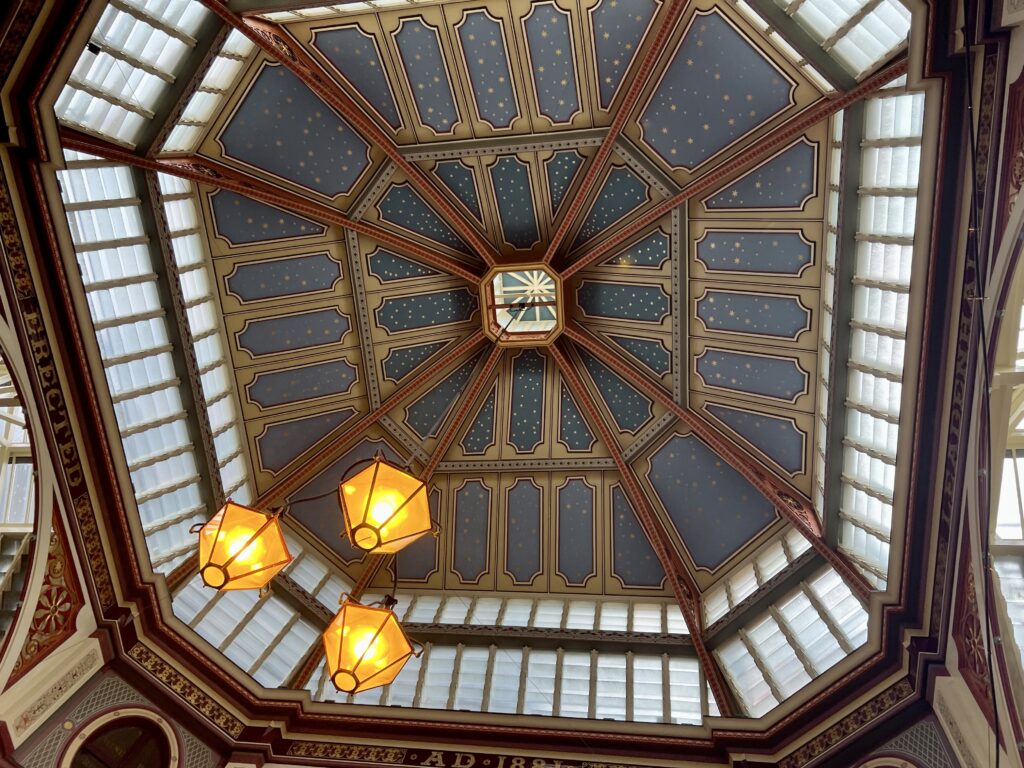 Leadenhall Market is a historic covered market in the City of London, dating back to the 14th century. Originally it was a market for meat, poultry, and game. Today, it’s best known for its beautiful Victorian architecture: painted beams, cobbled walkways, and an ornate glass-and-iron roof make it one of the most photogenic markets in London. Now, instead of butcher stalls, you’ll find boutique shops, wine bars, cafés, and restaurants.
